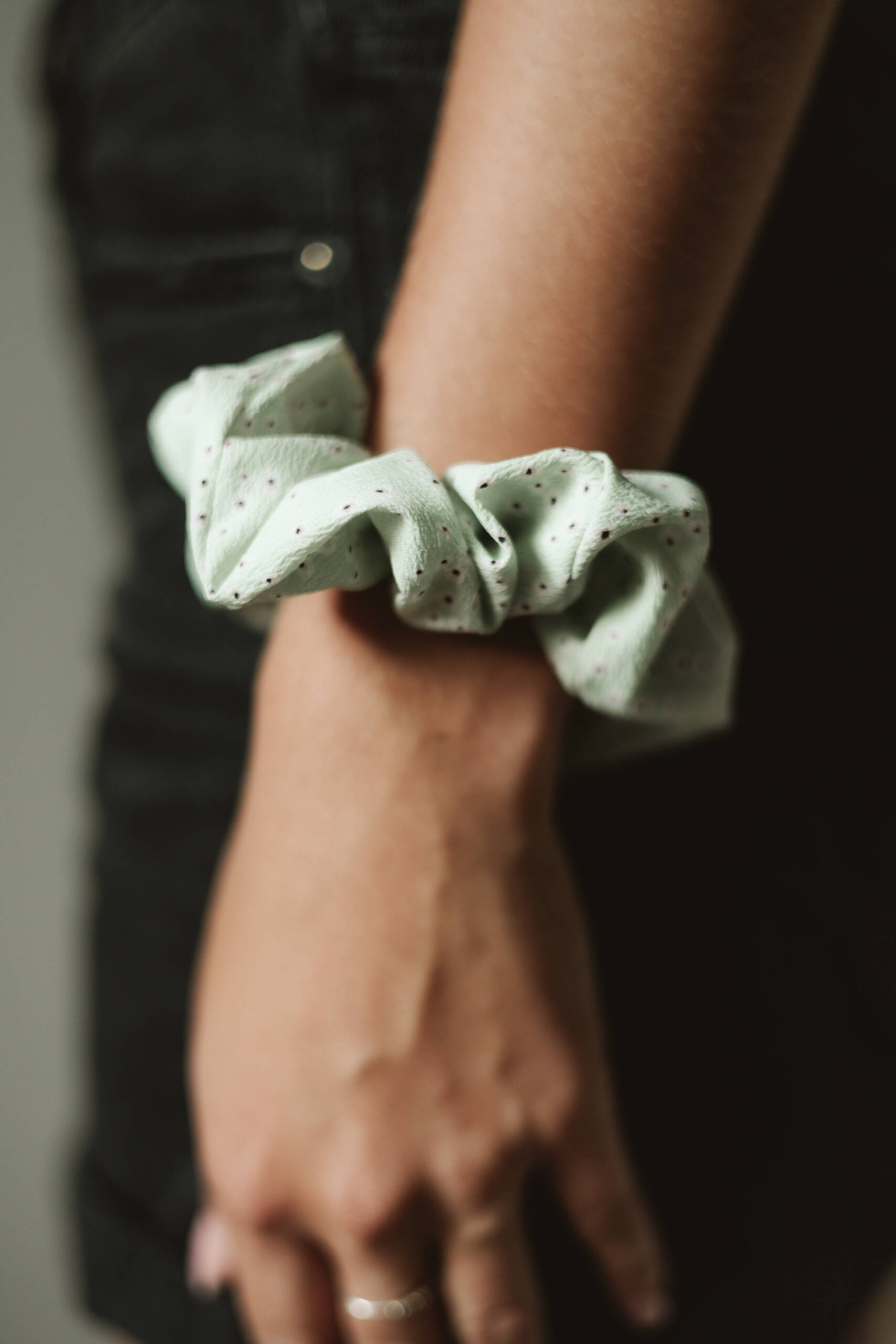 Chaque chouchou est confectionné à la main à partir de tissus soigneusement transformés, ce qui lui donne son caractère unique étant donné que les modèles sont très limités. L’élastique, sélectionné avec attention pour sa qualité et sa résistance, garantit une tenue durable et confortable, pour une création belle et solide à la fois.