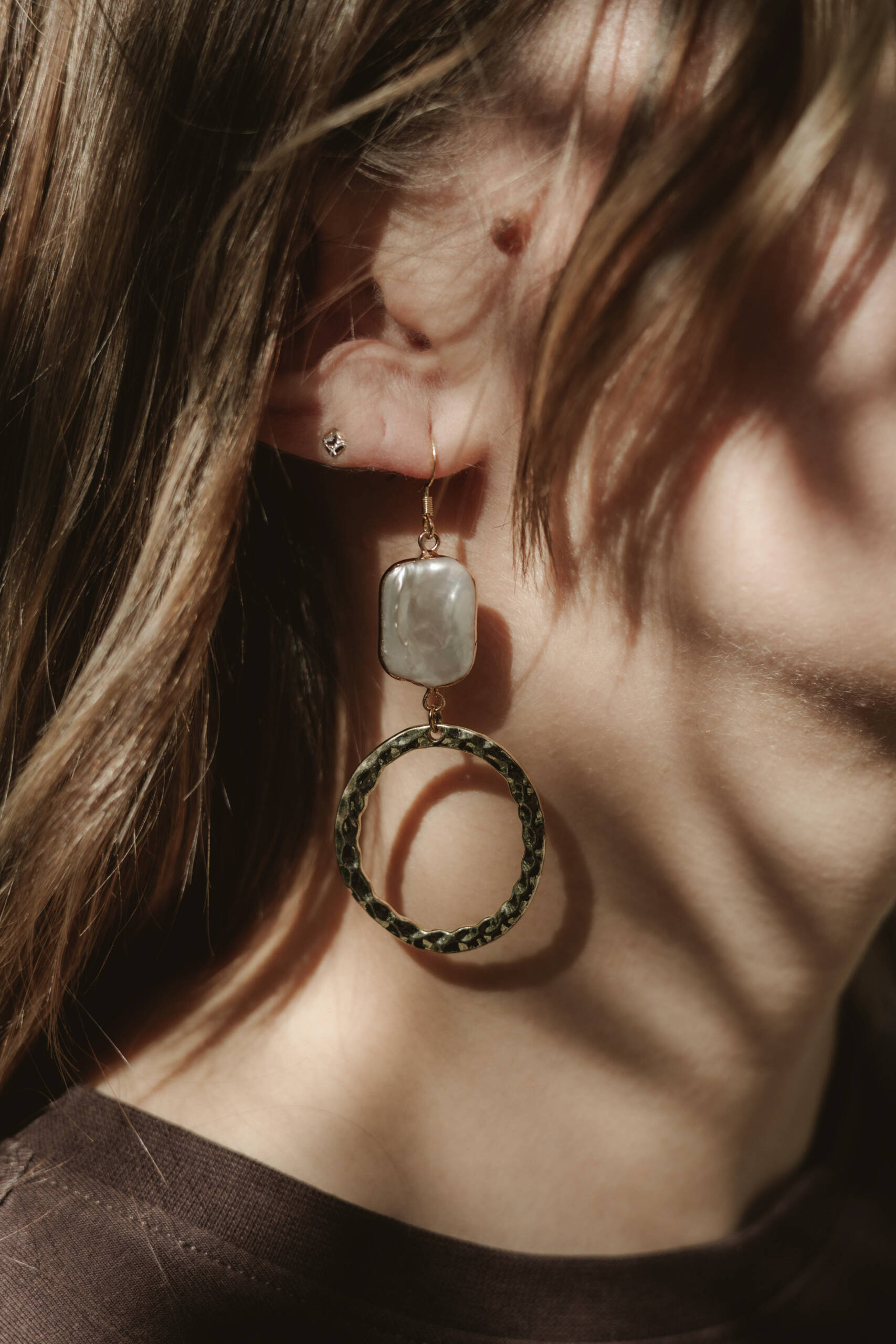 Perles Keshi naturelles uniques + cercle martelé artisanal, montés sur acier inoxydable doré hypoallergénique. Matériaux : acier inoxydable doré (résistant) & perles de Keshi (authenticité, douceur, unicité). Design : cercle martelé qui capte la lumière. Atouts : légères, élégantes, chaque paire est unique