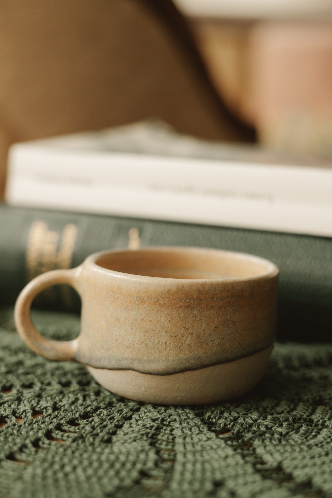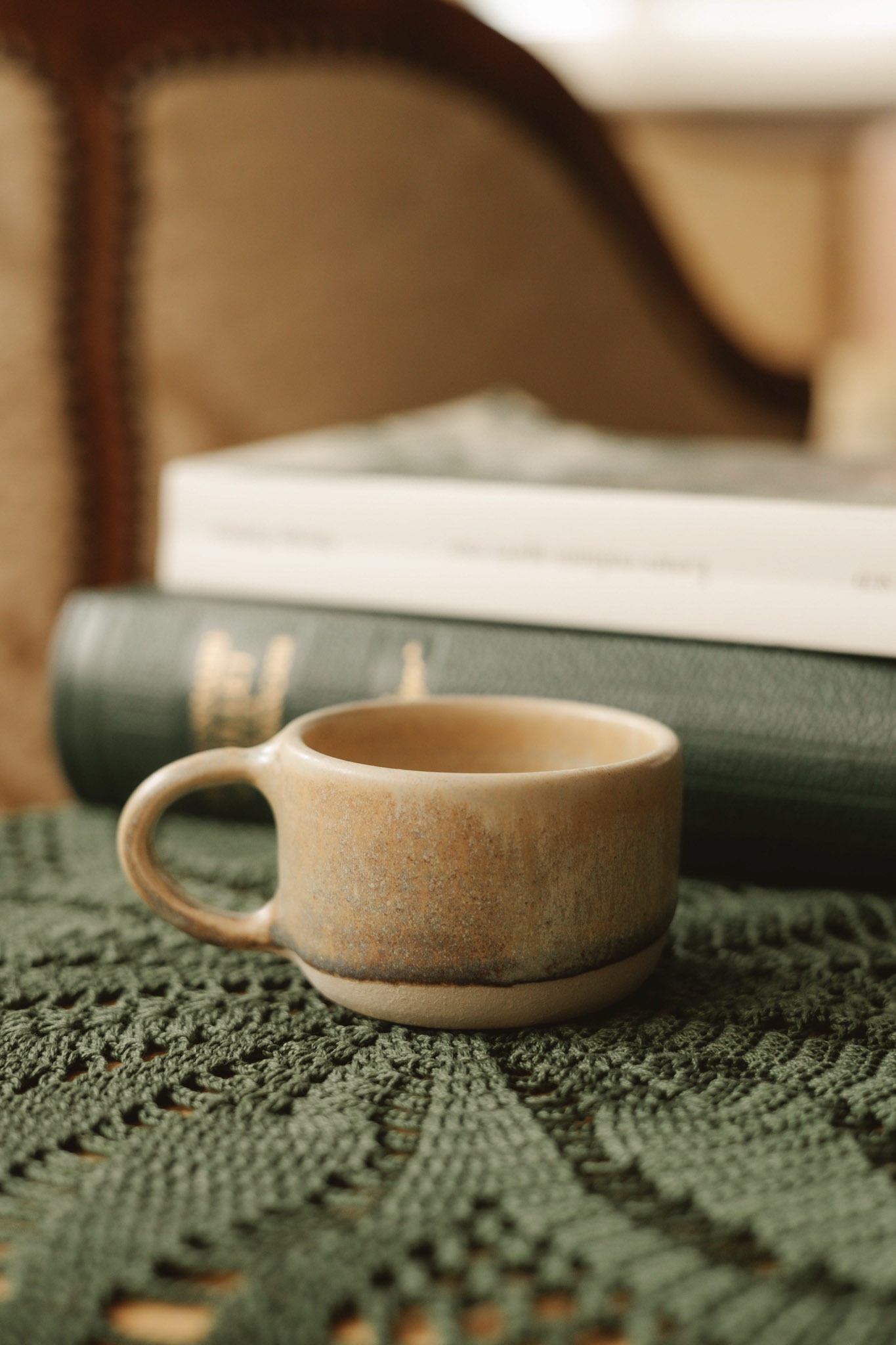 Cette tasse espresso en céramique artisanale séduit par ses teintes naturelles et sa texture brute, qui racontent le geste et le savoir-faire de l’artisan. Chaque détail est légèrement différent, c’est ce qui la rend vivante, authentique, et impossible à reproduire à l’identique.